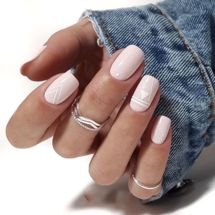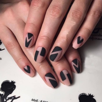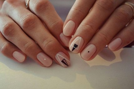 Когда речь идет о маникюре для работы в офисе, многие сразу же представляют оформление в геометрическом стиле. Это не удивительно, поскольку такой дизайн является одним из наиболее универсальных вариантов на любой случай. Чаще всего его выполняют в черном цвете на нейтральном светлом покрытии. Это позволяет выделить рисунок и сделать его более заметным.