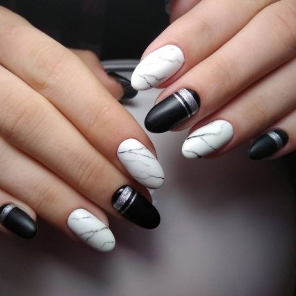 Все более актуальным с каждым годом становится мраморный дизайн. Это имитация природного камня, которая на ноготках смотрится особенно стильно.