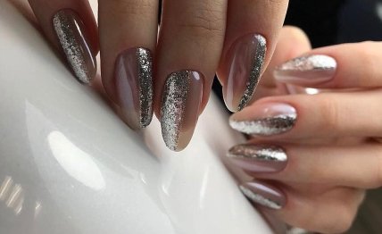 Но лучше всего серебряный маникюр любит глитер. Согласись, сочетание снежного серебрянного маникюра и большое количество блесток на ногтях - это практически хрестоматийное сочетание.