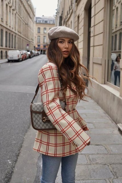 Пиджак точно должен быть в гардеробе каждой девушки. Он никогда не выходит из моды и позволяет создавать самые разнообразные сочетания: летом – с балетками, кроссовками, юбками и платьями, а зимой – с джинсами, брюками, ботинками и сапогами. Этой осенью лучшим вариантом станет пиджак с принтом в клетку карамельного цвета и с пуговицами в два ряда. Этот принт – тренд сезона, а карамельный цвет разбавит темные краски осени и зимы.