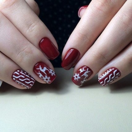 Всем давно известно, что главный герой Нового года — это Дед Мороз. Ну, а какой Дед Мороз без оленей? Именно их часто можно встретить на женских ноготках в новогоднюю ночь. Этот вид декора смотрится довольно игриво и сказочно.
