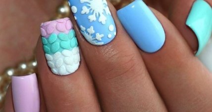 Никого не удивит, что тематика орнаментов зимой приобретает празднично-уютный вид. Некоторые коготки девушек украшает маникюр со снежинками, на других уже – бой курантов и шампанское.