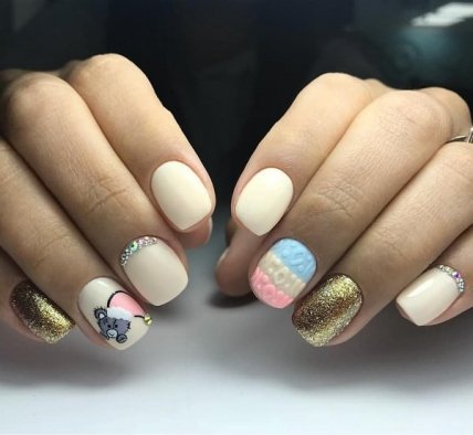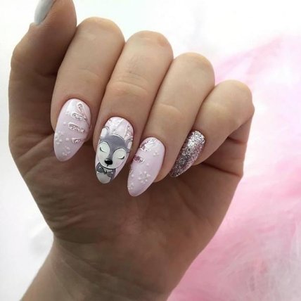Новогодняя и рождественская атрибутика украсит праздничный зимний маникюр. Зато очень актуальным станет осенне-зимний маникюр с рисунками животных, которых мастера любят изображать с шапкой или шарфиком.