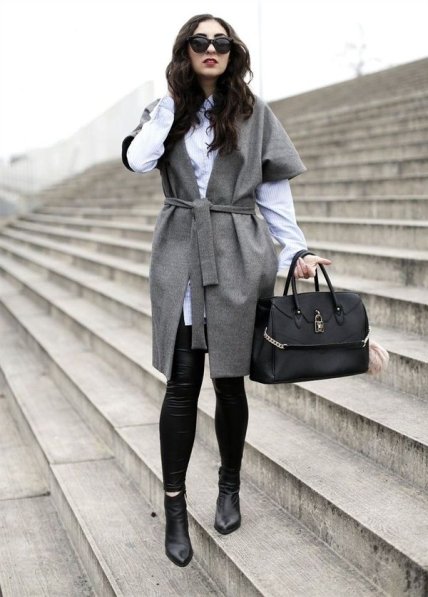 Вам нравятся наряды с леггинсами? Не бойтесь использовать их в деловом гардеробе. Леггинсы отлично сочетаются со стилем оверсайз и будут неплохо смотреться с ультрадлинной рубашкой.
