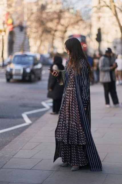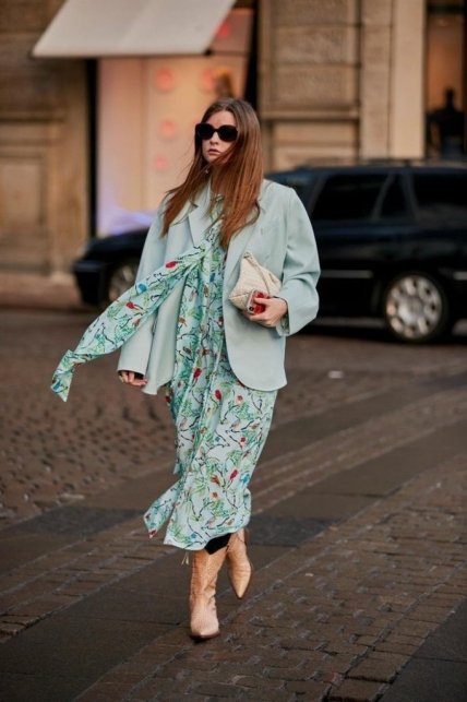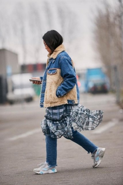 Если вы принимаете все тенденции, какими бы странными они ни были, то обратите внимание на этот образ: платье+джинсы. Это еще одна уличная комбинация, которая идеально подходит для дневной прогулки. Легкое шифоновое платье, светлые джинсы и теплая куртка – лучшее сочетание для любительниц платьев и стиля бохо.