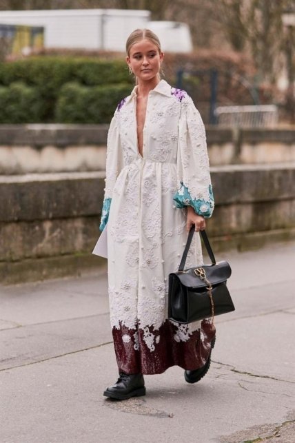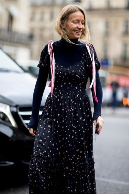 Если вы собираетесь приобрести новое платье для сезона осень-зима 2019/2020, то ищите платье из плотной материи с длинными рукавами (никакого шелка или шифона). Таким образом, вам не нужно будет дополнительно надевать свитер или шарф. Наденьте теплые колготы, платье и пальто. Стильный образ готов!