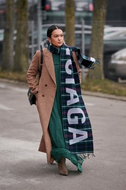 Эта просто незаменимая вещь в мире стритстайла, а также замечательный вариант, чтобы согреться в зимние холода. Можно найти идеальный вариант шарфа под любое пальто. Кроме того, вам нужно носить его только на улице. Поэтому смело кутайтесь в шарф XXL, чтобы на мероприятии вы привлекали внимание своим ярким и стильным платьем.