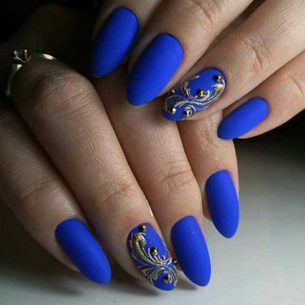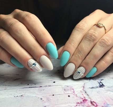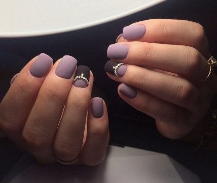 Матовым можно сделать как однотонный маникюр, так и маникюр с рисунком. А особенно интересным вариантом будет маникюр кошачий глаз, покрытый матовым покрытием.