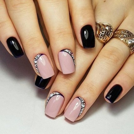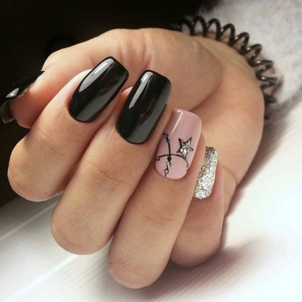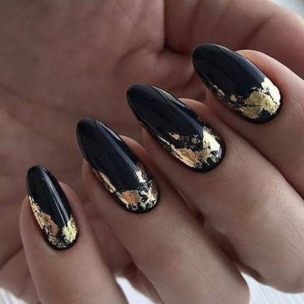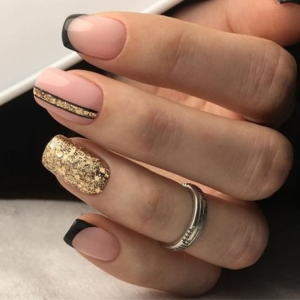 Комбинация черного и золотого это волшебное слияние цветов. Такой вид маникюра подойдёт как для повседневной жизни, так и для праздничных дней. К тому же с таким маникюром не надо думать о сочетании его с одеждой. Здесь подойдет все.