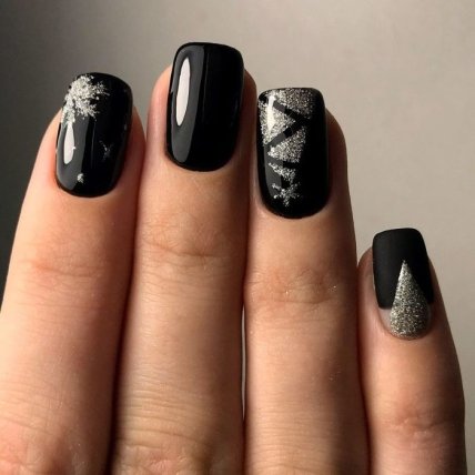 Черный цвет в зимнем маникюре всегда был, есть и будет. Это уже как некая классика. А для модного зимнего маникюра 2020 предлагают добавить в него золотой цвет. Золото будет делать черный маникюр благородным и дорогим.