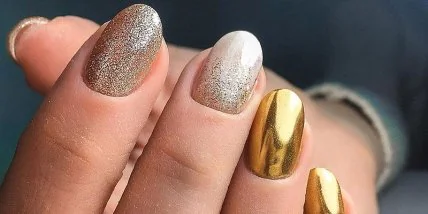 Самый простой вариант создания модного золотого маникюра – использовать лак с блестками. Но учитывайте, что такие лаки могут иметь абсолютно разный эффект.
