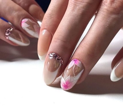 Но новинка 2020 года предлагает нам обратить свое внимание на маникюр с втиркой и крупными рисунками цветов.