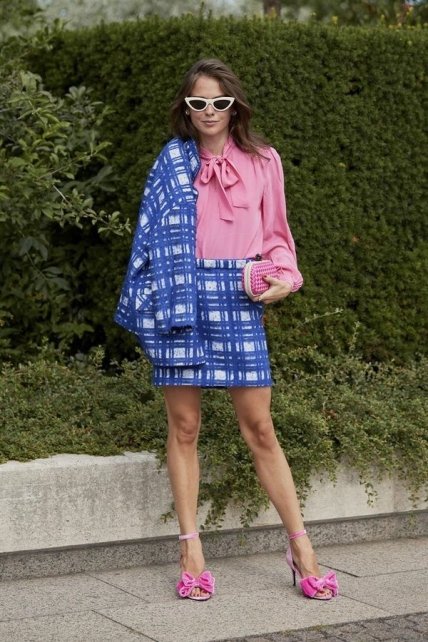Конечно, лучше всего сочетать голубой цвет с его оттенками: цвет морской волны, бирюзовый, светло-голубой, синий… Но этот образ демонстрирует, что существует еще один очень стильный и оригинальный вариант: сочетания голубого и розового.