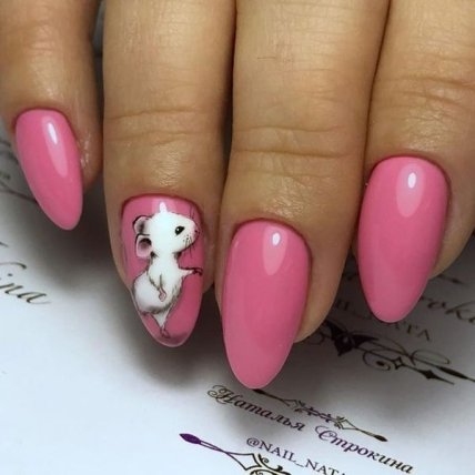 И самое главное — украсьте ногти символом наступающего Нового года — мышонком или маленьким крысенком. Он прекрасно смотрится как на коротких, так и на длинных ногтях.