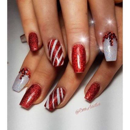Рисунки на ногтях на новогодние праздники – это удивительные абстракции и роскошь сияющих блесток.
