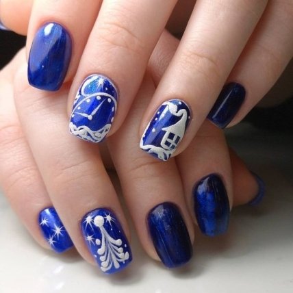 Так что поспешите сменить осенний маникюр на зимний — в виде снежинок, веточек, елочек, новогодних игрушек.