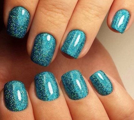 Далеко не все дизайны хорошо смотрятся на коротких ногтях. Лаки с мелким шиммером могут стать настоящим спасением для тех, кто не хочет отказываться от яркого маникюра, но не может отрастить длинные ногти. Разноцветные блёстки создают красивые переливы, превращая лак в настоящего хамелеона. В зависимости от освещения его цвет может меняться от насыщенного лазурного до лёгкого золотистого.