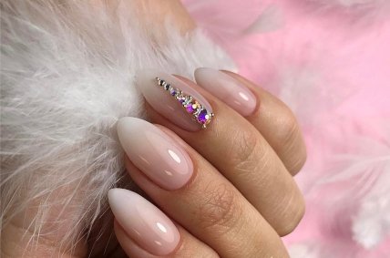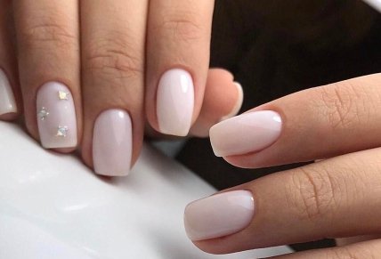 Для такого нэйл-арта необходима полупрозрачная база, которую можно заменить витаминным составом для укрепления ногтевой пластины. Такой маникюр предполагает оттенки лаванды, розовых лепестков, экрю, персик и другие.