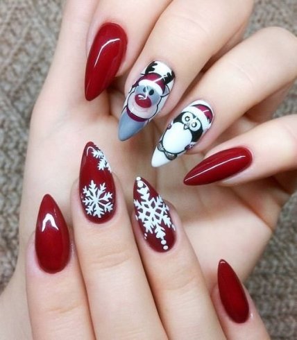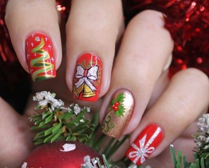Длина и форма ногтей в Новый год не имеет значения, вы можете себе позволить все, что хотите, главное чтобы это вписывалось в ваш новогодний образ.