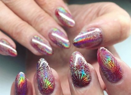 Полночь, отделяющая старый год от нового, не обходится без праздничных салютов. Разноцветные россыпи огоньков-фейерверков озаряют черноту ночного неба. Прямо магия огня и красок! Используйте салют как вдохновение для маникюра.