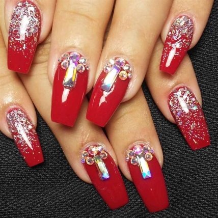Любите броские образы? Тогда щедро украсьте ноготки прозрачными стразами, похожими на крохотные льдинки. Этот маникюр лучше делать на накладных ноготках.