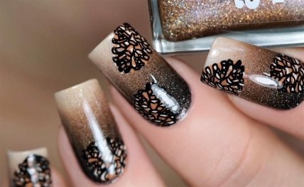 Морозные кружева инея на стеклах чаруют замысловатыми узорами. Их можно изобразить с помощью техники мехенди. Это типичные для татуировок хной завитушки. Такой праздничный вариант подходит и для Нового года, и для свадебного маникюра.