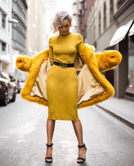 Зимой жутко холодно и так мало света, как же хочется ощутить тепло и яркий свет солнышка. Что ж, в этом поможет стильное вязаное платье насыщенного желтого оттенка. Если неоновая палитра для вас чересчур броская, то выбирайте более теплые тона. Например, зимой всегда актуален горчичный цвет.