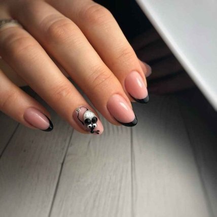 К примеру, французский маникюр будет интересно смотреться, если на одном из ноготков вместо линии улыбки будет изображена белая мышка. Главный фон при таком декоре имеет огромную вариацию оттенков. Все зависит от желания будущей обладательницы маникюра.