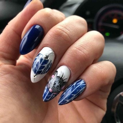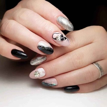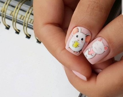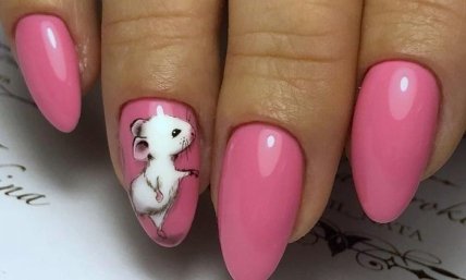 Главным декором данного сезона является, конечно же, мышка и крыса. Поэтому довольно часто можно увидеть на ноготках современных модниц именно такой орнамент.