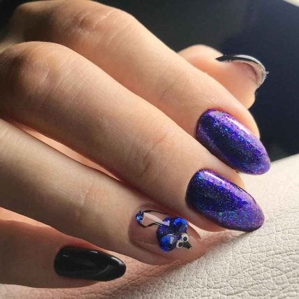 Поэтому они рекомендуют использовать пастельный, нежно-голубой, розовый и сиреневый оттенки. Что касается формы, то главную роль в маникюре с мышкой играет миндаль.
