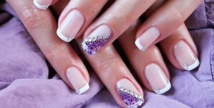 На длинных ногтях красиво смотрится френч, выполненный в виде тонких линий. Нежный и изысканный вариант можно сделать, используя светлые оттенки гель-лаков, а более стильный и экстравагантный с помощью черного гель-лака. Хорошим дополнением к подобному дизайну станут стразы или металлический декор.