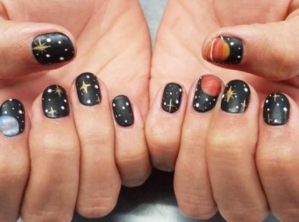 В этот раз в тренд входят "космические ногти", "звездное небо" и "северное сияние", которые уже стали популярными.