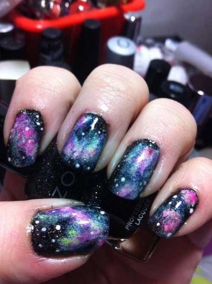 Для его создания галактического пространства понадобится большая коллекция разноцветных лаков.