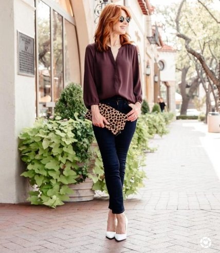 Если говорить о джинсах очень низкой талией, потертостями и рваных моделях, то они совершенно неуместны. Цвет желательно выбрать темно-синий и голубой для разных поводов и луков.