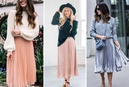 Плиссе порадует модниц круглогодично, будучи представленным в топовых моделях юбки на осень-зиму и весну-лето. Плиссировка займет лидирующие позиции, как среди юбок, так и платьев в теплый сезон. Разнообразие модных плиссированных юбок порадует все модниц, ведь выбирать будет из чего. Оттенки бежевого и нюдового, яркие коралловые плиссированные юбки, с принтами и акцентом на талии позволят выполнить шикарные луки с юбочками плиссе.