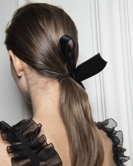 Гигантские банты вошли в топ экстравагантных тенденций от дома моды Valentino. Конечно, не стоит оголтело переносить элементы от-кутюр в образы прет-а-порте. Ограничьтесь выбором красивого банта из модных материй. Например, из черного атласа или бархата.