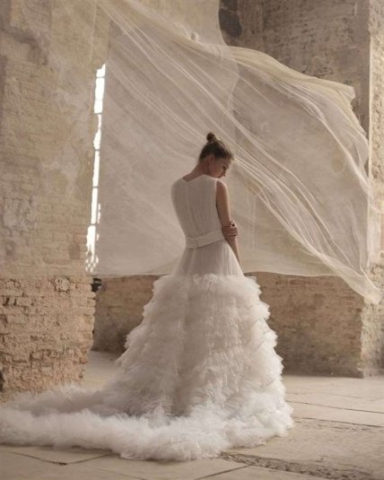 Игра с объемом, фата XXL, органза, фатин, обручи… Все это обязательно должно присутствовать в образах невесты 2020 года.