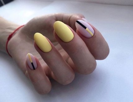 В качестве рисунка может выступать геометрический рисунок, выполненный тонкими линиями или просто тонкая линия по середине ногтя, а может нежный утонченный цветок или листик.
