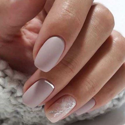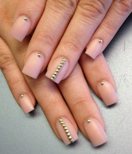 Не лишним в исполнении маникюра нюд будет использование фольги, акриловой пудры, всевозможных блесток, камней и страз, но используя эти украшения надо помнить, нюдовый маникюр – это естественность и натуральность.