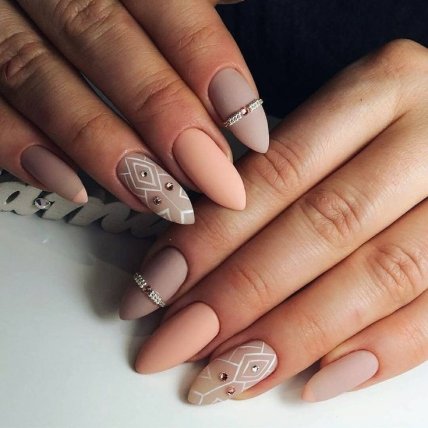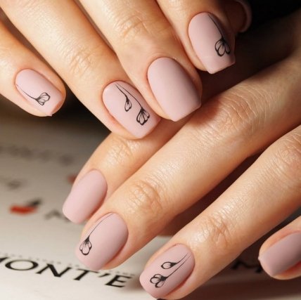 Маникюр 2020: стильный матовый нюд с тонкими линиями (Фото)