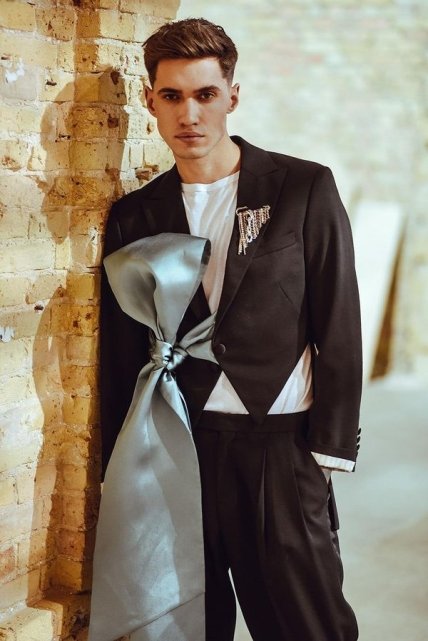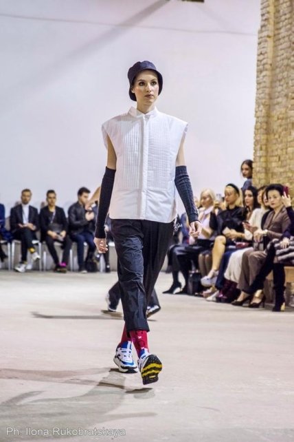 Серж Смолин: «Все ожидали от меня костюмов, но их в линейке всего три. И их я впервые показал на женской фигуре, демонстрируя то, что сейчас уже женщины руководят миром, а мужчины становятся слабее. В этом сезоне я представил мобильность, трансформацию и удобство, которые для меня вышли на первый план. Я взял классическую рубашку, но подал ее как пуховик, а в классическом пальто отрезал рукава и спинку, превратив их в передники».