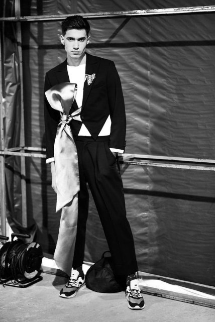 Коллекция подчеркнута яркими компрометирующими принтами S.Payet, выполненными на белых футболках. Все look-и выполнены в холодной гамме: черно-белой с применением хаки и денима. Среди материалов преобладают плотная камвольная шерсть, курточный нейлон и легчайшая болонья.
