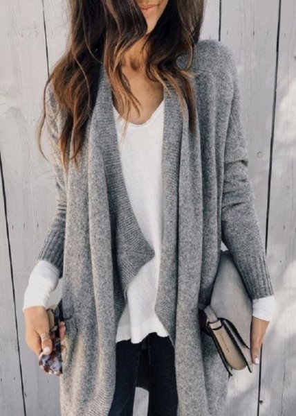 Учитывая тот факт, что зимы в России очень холодные, теплый уютный кардиган обязательно вам пригодится. Впрочем, весной и осенью он также пригодится, согревая в особенно ветреные дни. Самой универсальной моделью станет удлиненный вариант из плотного трикотажа. Его можно будет надеть с платьем, брюками, джинсами. С обувью также можно поиграть: грубые ботинки, ботфорты, кроссовки…Окончательный выбор должен зависеть от общего аутфита.