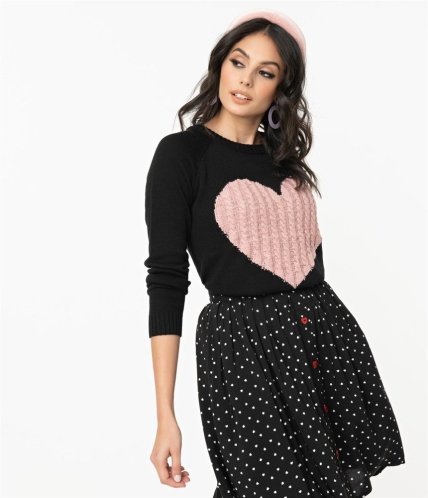 Поклонницам французского стиля раздолье на День святого Валентина, ведь их образы прекрасно отражают дух романтики. Надевайте коротенькую и пышную юбчонку, украсьте волосы стильным беретом или огромным обручем и дополните наряд милым свитером с изображением крупного сердца. Присмотритесь к юбке: горошек и пуговки так же в форме сердечек!