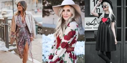 А вот этот наряд наверняка оценят те, кто любит привносить в образ элементы богемного стиля. Выбирайте легкое платье с просторными рукавами и шляпку-слауч с покатыми полями. Хм… как бы так ненавязчиво намекнуть любимому, чтобы подарил пышный букет роз? Точно, нам нужен цветочный узор с розовыми бутонами.