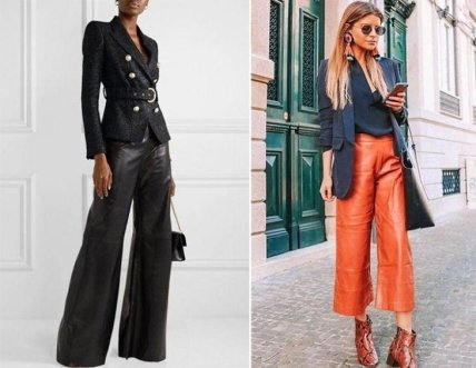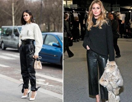Кожаные брюки: с чем носить, модные сочетания (Фото)