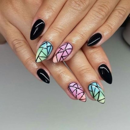 Полупрозрачное покрытие в стиле negative space с геометрическими узорами также будет в тренде весной 2020.