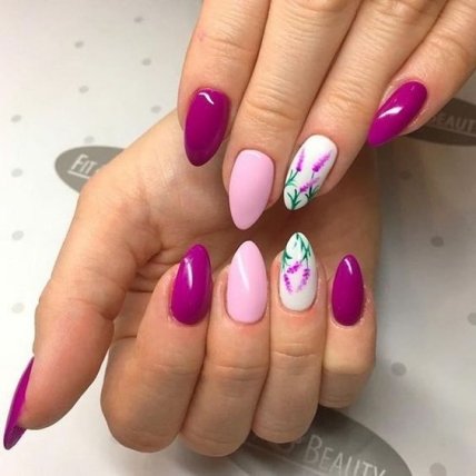 Веточки, листики и бутоны в сочетании с яркими сочными красками сделают ваши ногти по-настоящему весенними.