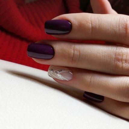 Оригинальной идеей станет комбинирование матового и глянцевого лака на ноготках, выделение одного-двух пальчиков аккуратным рисунком или дополнение сверкающим декором.