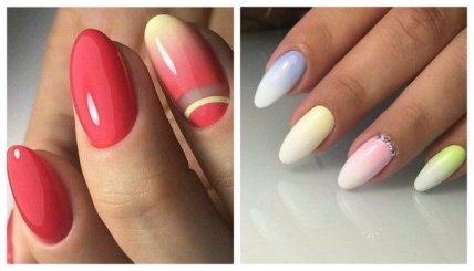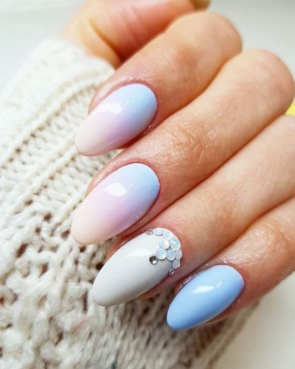 Вы можете остановить свой выбор как на нежных нюдовых оттенках, так и на насыщенных ярких цветах. Для более изысканного эффекта выполните плавный переход в стилистике омбре при помощи глиттера и ваш маникюр засияет в лучах тёплого весеннего солнца праздничными нотками.